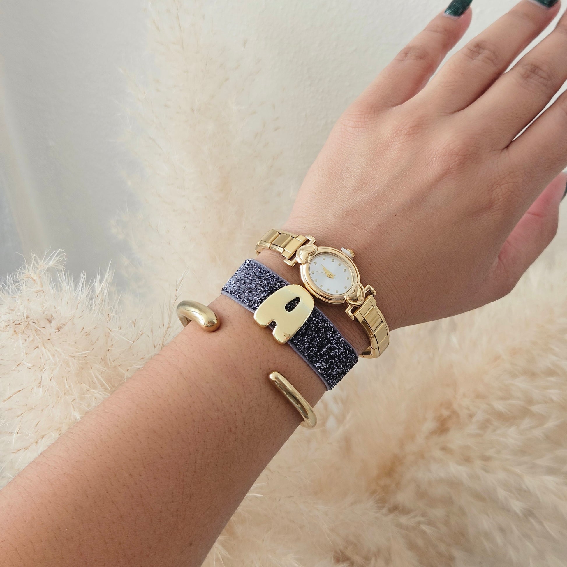 Our Elastic Glitter Initial Bracelet is the perfect blend of sparkle and personalization. Crafted with a comfortable elastic glitter band and finished with a gold-plated initial letter, this bracelet adds a subtle shine to your everyday style. Lightweight, stylish, and easy to wear — a must-have accessory for any occasion.